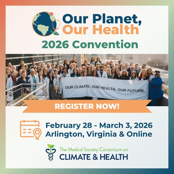 Registration is now open for the 2026 Our Planet, Our Health Convention! This event offers a unique opportunity to build community, earn CME/CE credits, and shape a tiered local to national agenda—at a critical time when climate disasters are worsening and federal action is stalling. Register here.